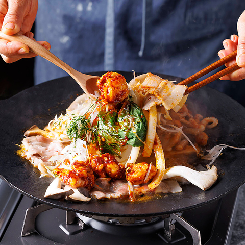 チュサムコプ【欲張り3種 チュクミ&サムギョプサル&ホルモンの鉄板焼き】